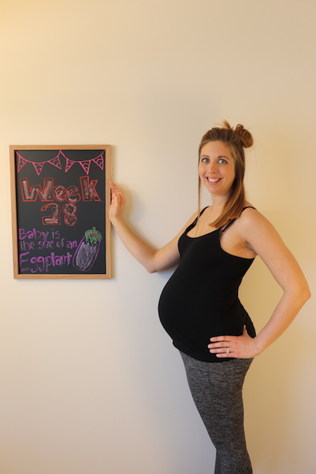 What Are You Feeling This Week: Starting to get a little uncomfortable with some back pain and rib pain. We learned that she is laying diagonally, which is causing some rib pain on the right side.
